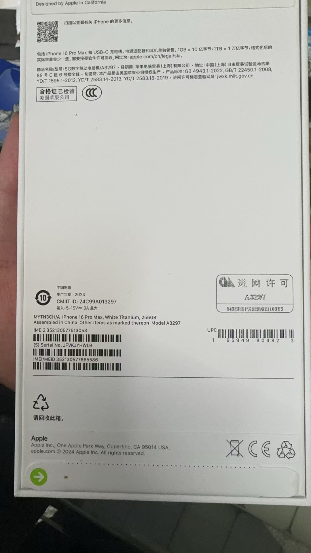 机身颜色: 白色钛金属